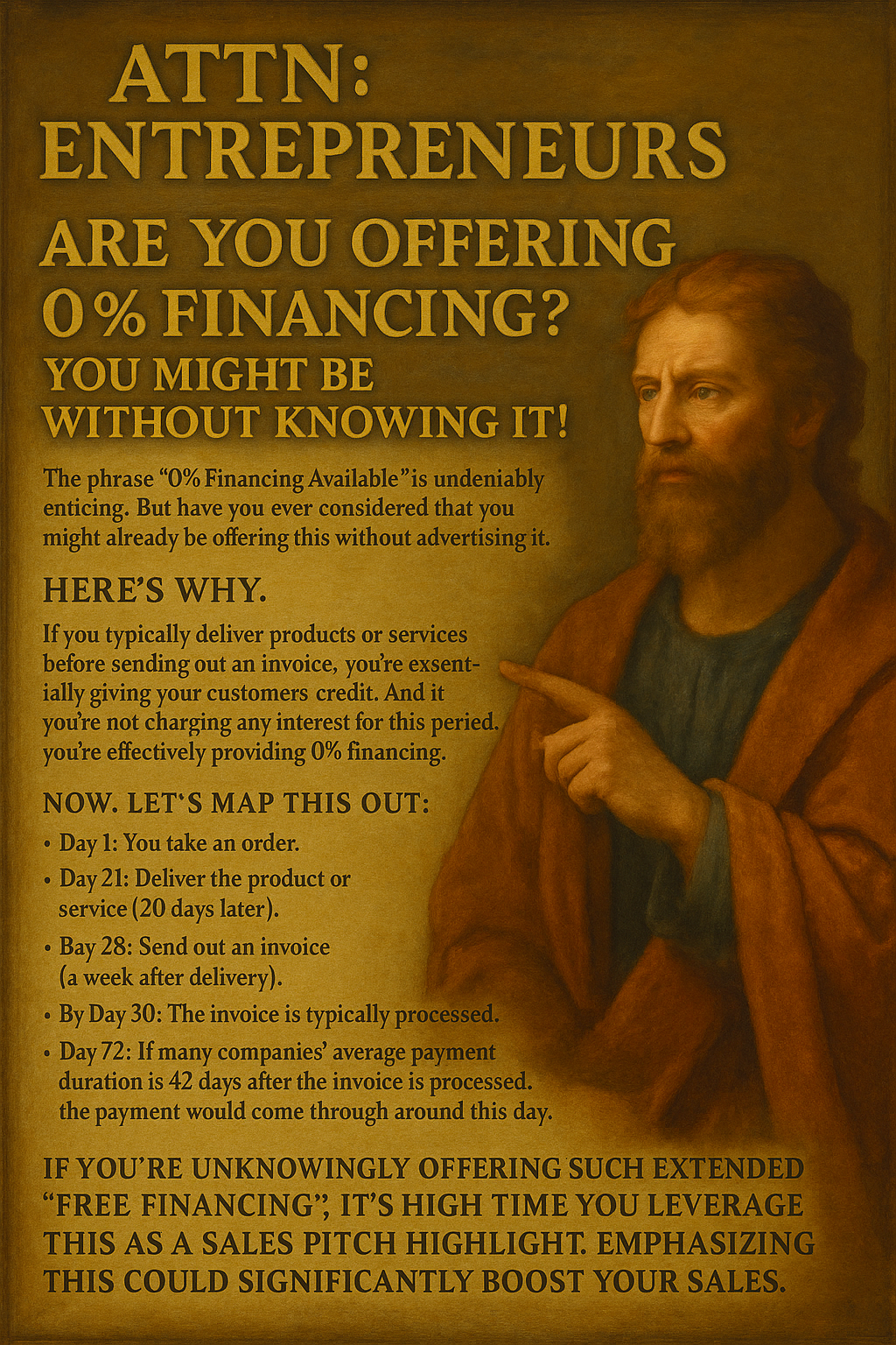I’m talking about 0% financing — the kind of language that moves product off shelves, closes deals faster, and boosts conversion rates across industries. It’s a proven sales magnet, and yet most solopreneurs and small business owners fail to use it.
