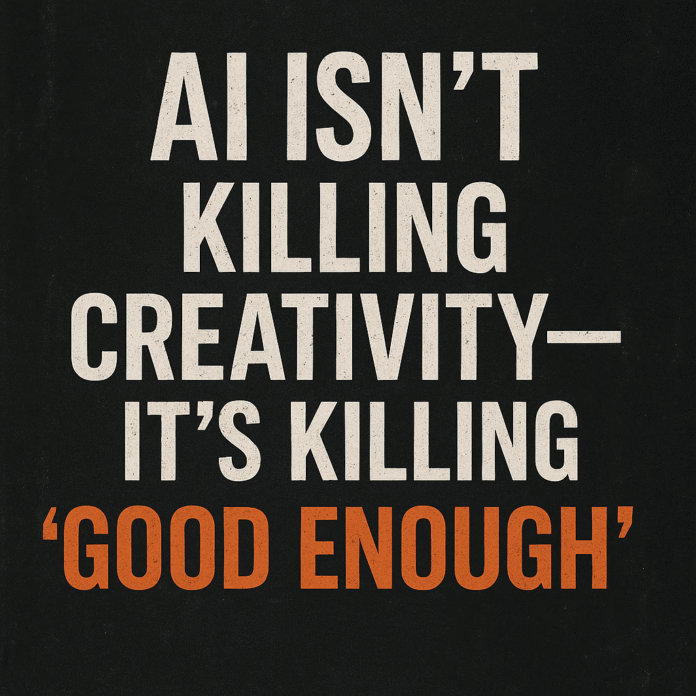The truth is uglier and more liberating at the same time. AI isn’t killing creativity — it’s killing your ability to hide behind excuses. It’s stripping away the lazy, predictable, “meh” work that used to pass as acceptable. And it’s exposing, in brutal clarity, the difference between people who create value and people who produce output.